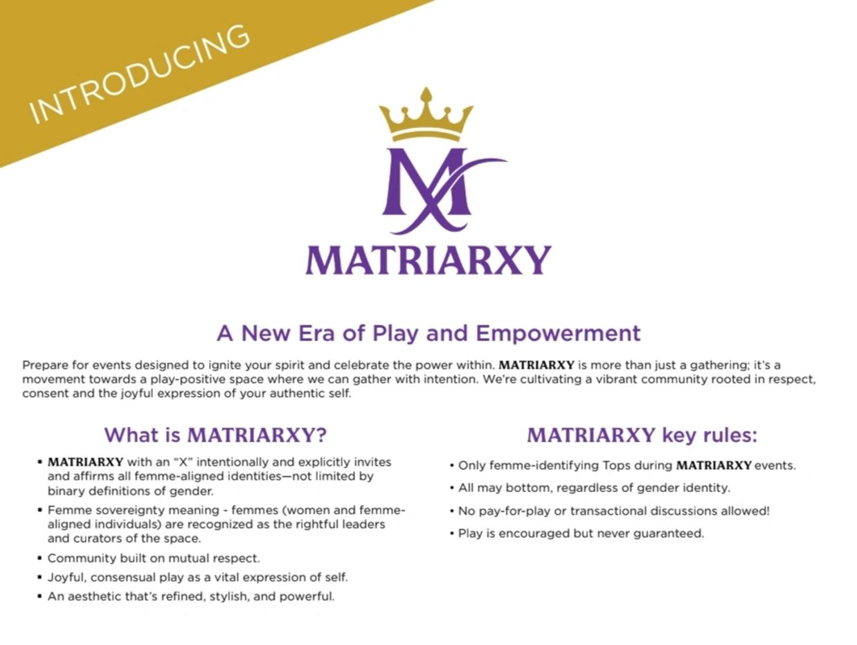 A proposal has been submitted to secure a regular date for a monthly Matriarxy event at a local venue—and now we wait patiently.